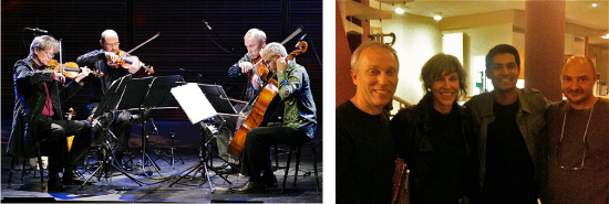 Right: Hanna Kulenty with three members of Kronos Quartet after the Berlin concert.