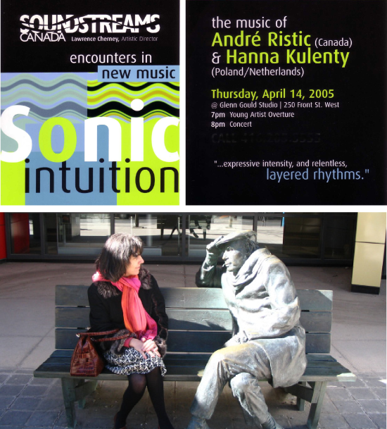 On April 14th 2005, Soundstreams Canada presented Sonic Intuition: the music of André Ristic (Canada), and Hanna Kulenty (Poland/Netherlands). It was an extraordinary evening of music featuring,among others, the world premiere of Hanna Kulenty’s Brass No. 4, performed by Marco Blaauw on a double-belled trumpet.