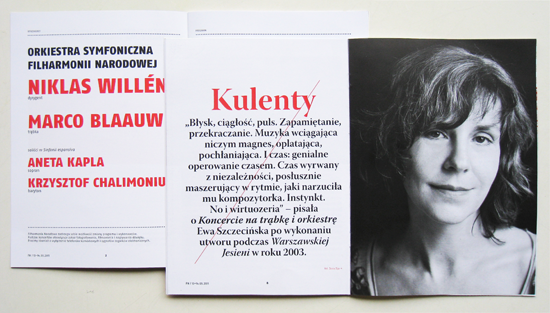 19 January 2013 the world première of E-motions (written in 2012) for accordion, string orchestra and percussion was premiered by Eneasz Kubit on accordion and the Leopoldinum Orchestra, conducted by Ernst Kovacic. After Preludium, Postludium and Psalm this is the second time Eneasz Kubit is performing an accordion work by Kulenty. The performance took place at the Wrocław Philharmonic in Poland.